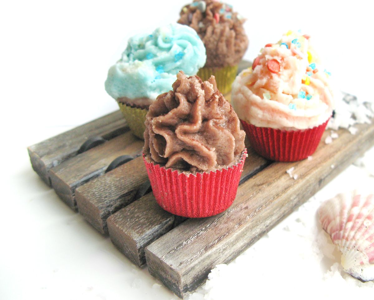 Natuurlijk moeten de zelfgemaakte producten ook mooi verpakt zijn, want dat hoort nu eenmaal bij Kerstmis. Badchocolaatjes, badchocolade, cup cakes enz. kunnen gemakkelijk in cellofaanzakjes worden gedaan, die ook voor zelfgebakken koekjes kunnen worden gebruikt. Als de badproducten echter ook citroenzuur bevatten, is het beter om PP-zakjes (polypropyleen) te gebruiken of om ze in een luchtdichte pot te vullen. Omdat het citroenzuur snel reageert met het vocht in de lucht, verandert het uiterlijk van de badproducten. Ze worden dan snel onaantrekkelijk, gebarsten en “pokdalig”. Organza zakjes – die verkrijgbaar zijn in vele kleuren en maten – en lege bonbondozen, die je online kunt bestellen, zijn ook geweldig als verpakking.