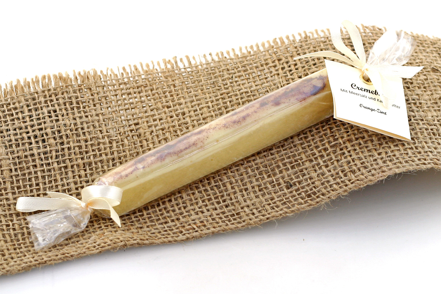 Sinaasappel en kaneel – een uitgebalanceerde geurcombinatie voor zowel badwater als elke andere gelegenheid. Voor de geur is gekozen voor een parfumolie, namelijkOrangentraum” van behawe. De parfumolie ruikt zowel fruitig als houtachtig. De kaneelgeur in de badstick komt uitsluitend van het kaneelpoeder.