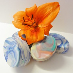 In feite is het maken van kleurrijke gemarmerde zeepjes niet zo moeilijk als veel mensen misschien denken. Dus als je een stapje verder wilt gaan en niet “gewoon” eenvoudige natuurlijke zepen wilt maken, kun je het nieuwe eBook “Marmeren en ontwerpen van zeep” downloaden. Het bevat niet alleen talloze recepten, maar ook gedetailleerde instructies en uitleg over het marmeren. Illustraties laten zien hoe je gemakkelijk zulke mooie zepen kunt roeren: